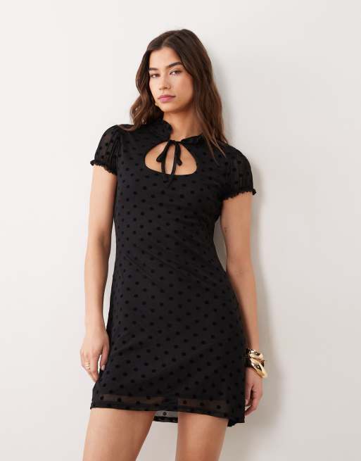 Miss Selfridge - Mini jurk van mesh met kapmouwtjes, uitsnijding en stippen