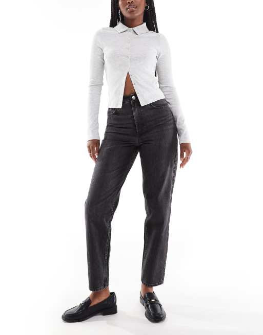 Miss Selfridge - Mom jeans met hoge taille in zwart met wassing