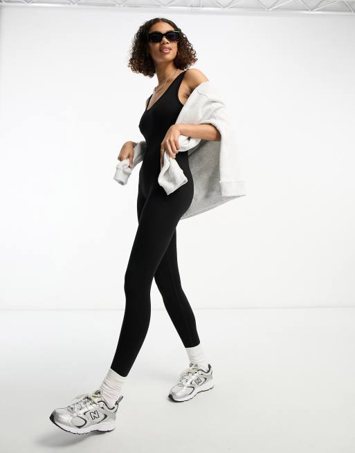 Miss Selfridge - Naadloze unitard met lage achterkant en camibandjes in zwart