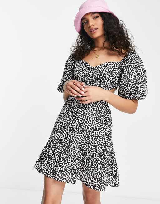 Miss Selfridge - Nette mini-jurk van linnenmix met uitsnijdingen in polkadotprint