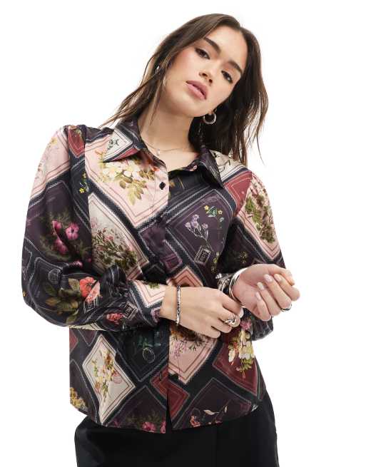Miss Selfridge - Overhemd met lange mouwen en ansichtkaartprint