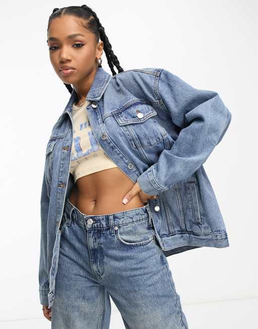 Miss Selfridge - Oversized denim jack in blauw met wassing