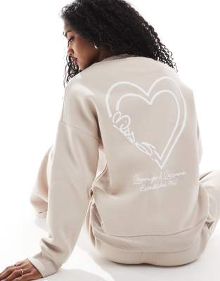 Miss Selfridge - Oversized sweatshirt met logoprint in reliëf in stone, deel van co-ord set