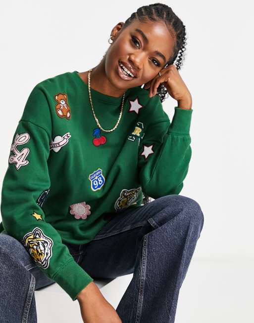 Miss Selfridge - Oversized sweatshirt met patchwork badge in groen