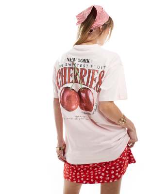 Miss Selfridge - Oversized T-shirt met kersenprint op de rug in roze