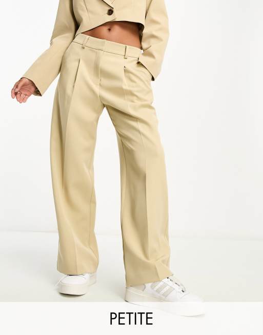 Miss Selfridge Petite - Broek met wijde pijpen en hoge taille in stone, deel van co-ord set