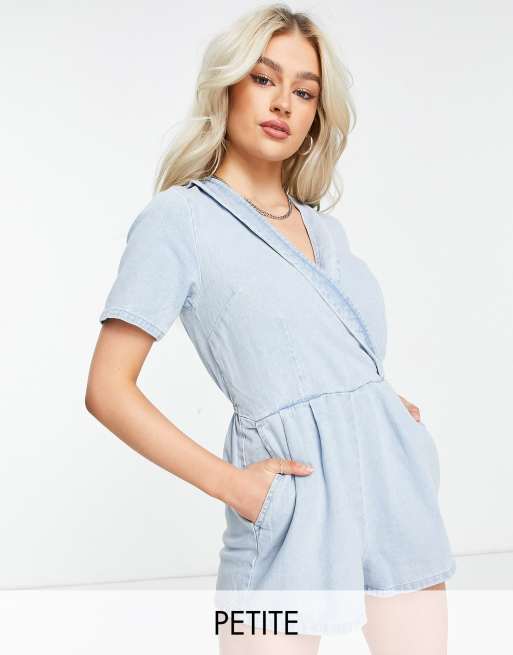 Miss Selfridge Petite - Playsuit met overslag in blauw