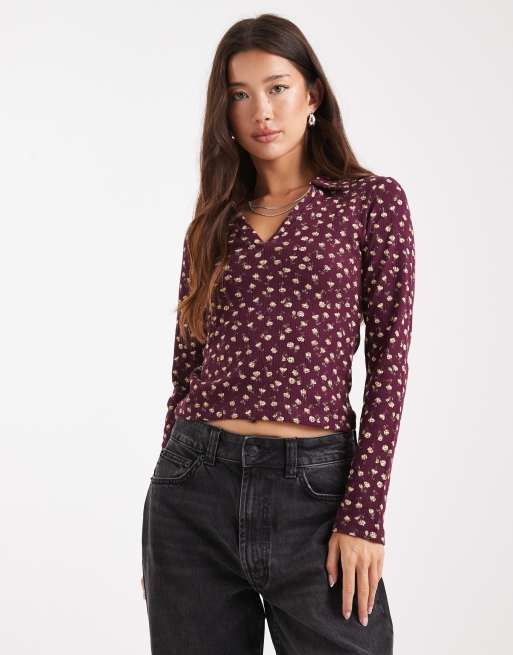 Miss Selfridge - Polotop met lange mouwen in fijne print