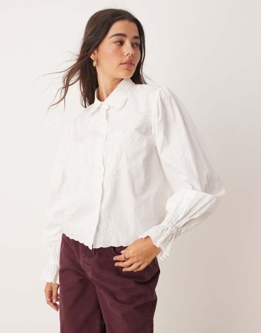 Miss Selfridge - Poplin overhemd met borduursels in wit