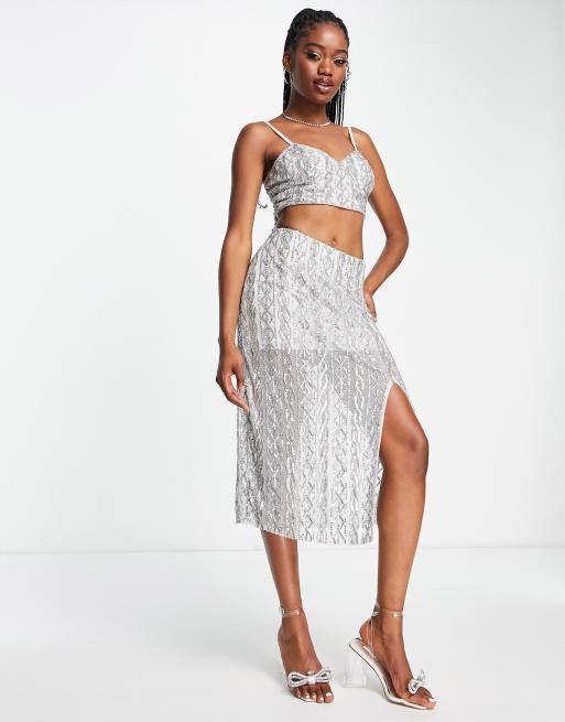 Miss Selfridge - Premium - Bralette met versiering van touwdetail in zilver, deel van co-ord set