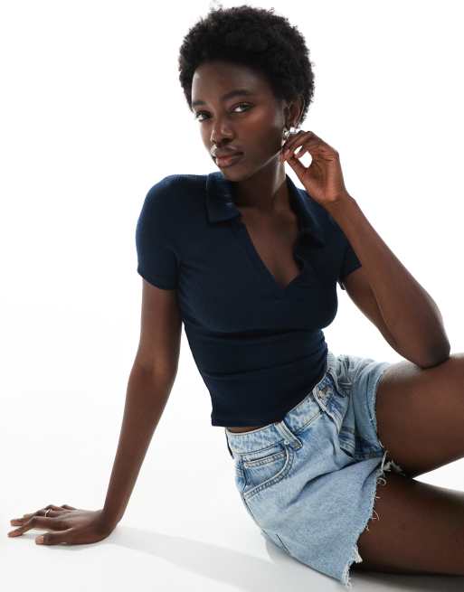 Miss Selfridge - Rib polo top in marineblauw