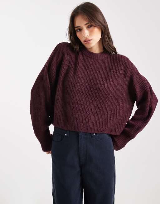 Miss Selfridge - Ruimvallende gebreide trui in paars