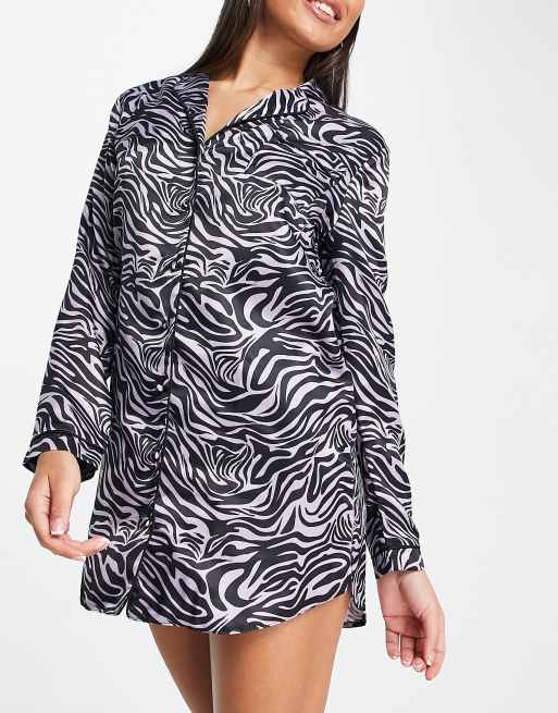 Miss Selfridge - Satijnen nachthemd met zebraprint