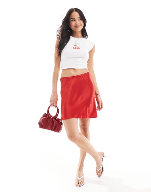 Miss Selfridge - Schuingesneden satijnen mini-rok met strik in rood