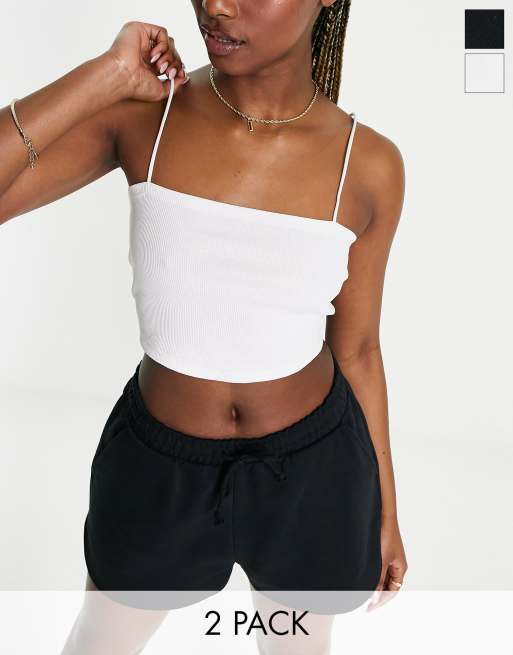 Miss Selfridge - Set van 2 crop tops met dunne camibandjes in zwart en wit