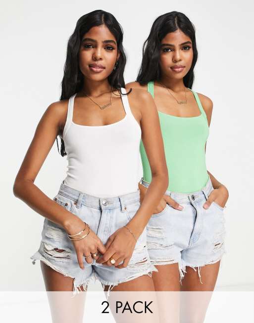 Miss Selfridge - Set van 2 mouwloze body's met gekruiste achterkant in wit en groen
