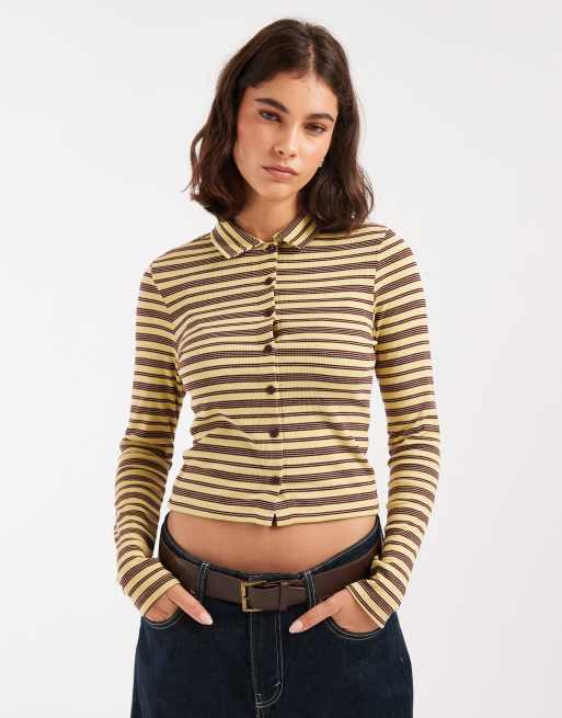 Miss Selfridge - Smal gestreept overhemd met lange mouwen en knopen in lichtgeel
