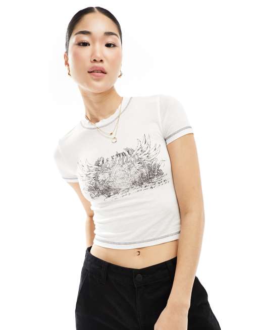 Miss Selfridge - T-shirt met grafische brandprint en korte mouwen