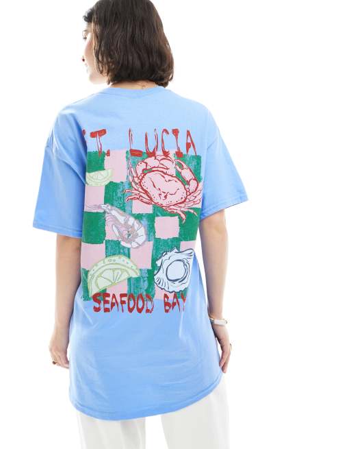 Miss Selfridge - T-shirt met grafische print van St. Lucia en schelpen in blauw
