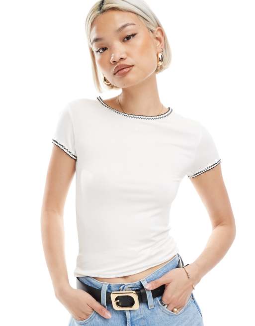Miss Selfridge - Top met ronde hals en lange mouwen van jerseystof in crème