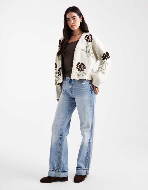 Miss Selfridge - Vest met bloemenmotief zonder sluiting in crème en chocoladebruin