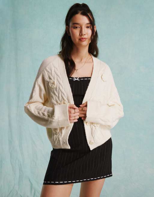 Miss Selfridge - Vestje met kabels in crème met contrasterende gehaakte bloemen