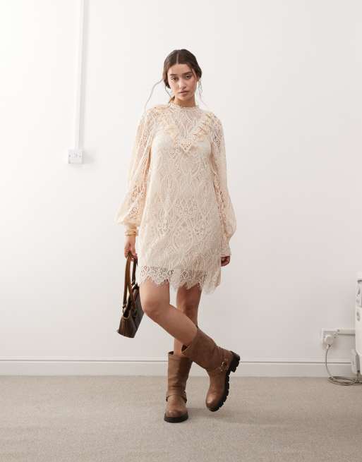 Miss Selfridge - Victoriaanse mini jurk van kant in lichtroze