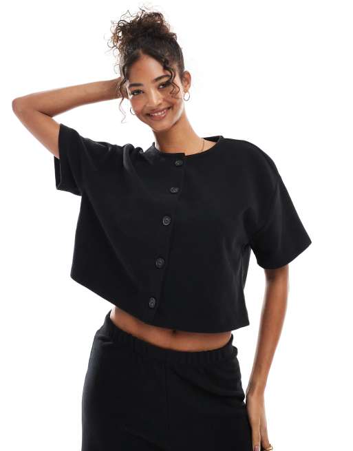 Miss Selfridge - Zacht geribbeld vest met korte mouwen in zwart, deel van co-ord set