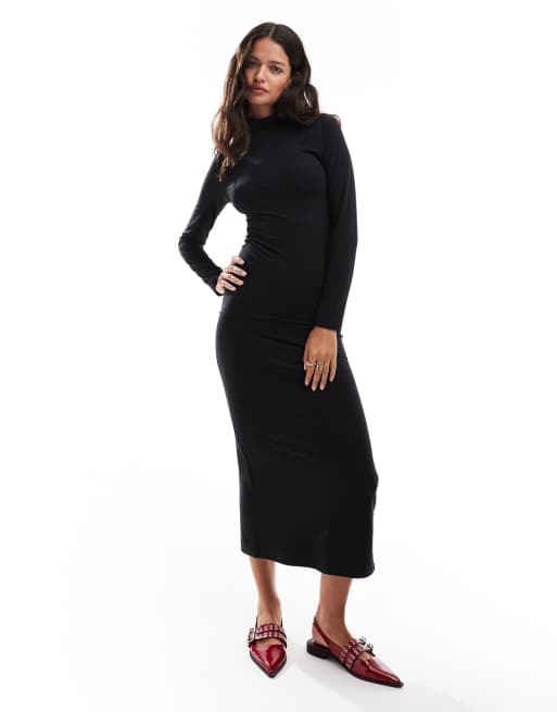 Miss Selfridge - Zachte maxi jurk met lange mouwen en hoogsluitende hals in zwart