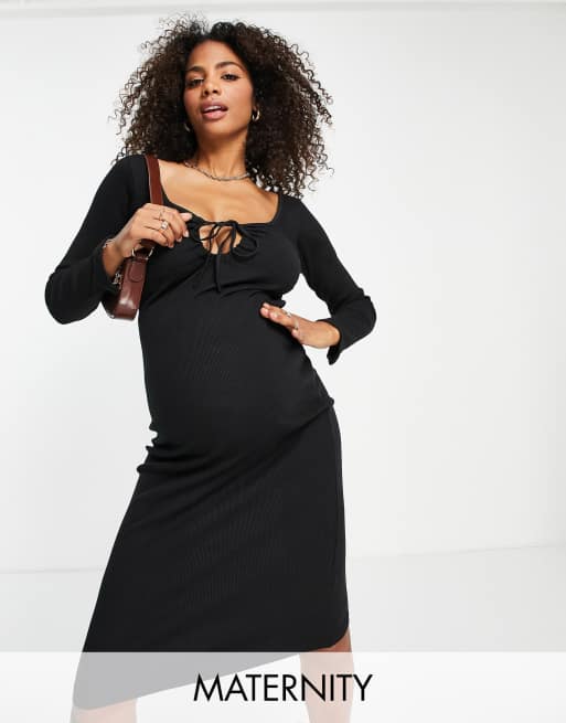 Missguided Maternity - Geribbelde midi jurk met strik in zwart