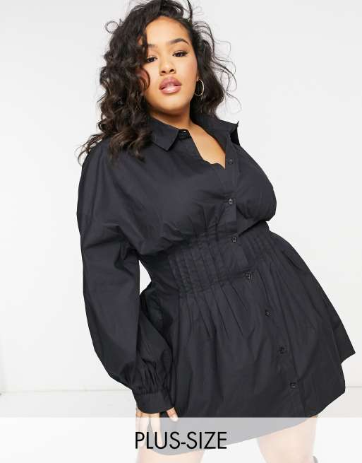 Missguided Plus - Overhemdjurk met ingenomen taille in zwart