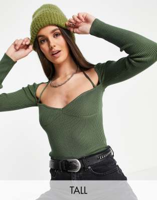 Missguided Tall - Gebreide top met vierkante hals in khaki