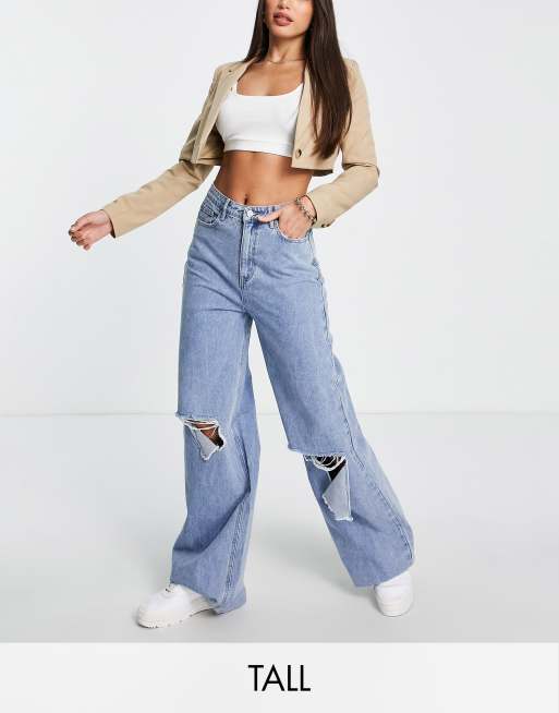Missguided Tall - Jeans met wijde pijpen en scheuren in de knie in blauw - MBLUE