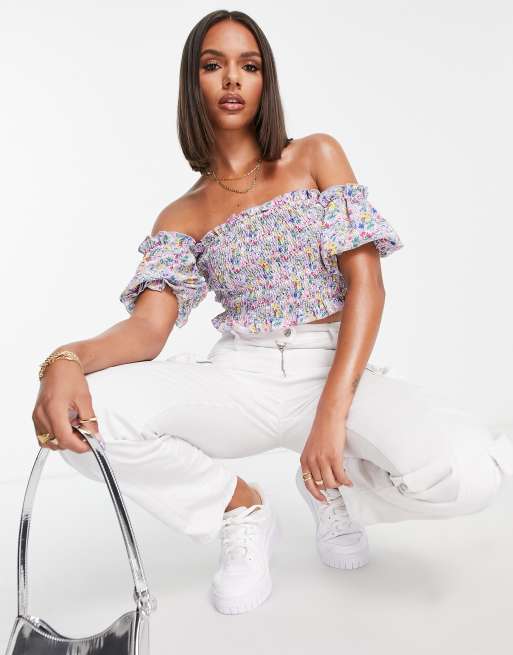 Missguided - Bardottop in lila bloemenprint