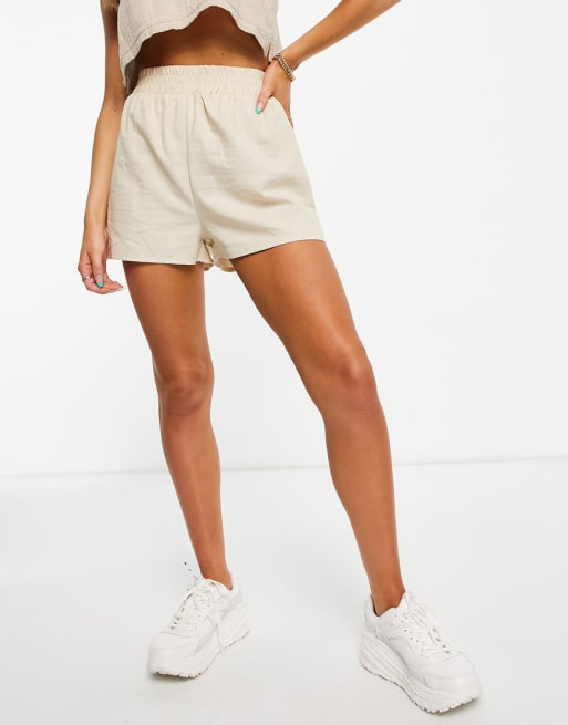 Missguided - Co-ord set met short en crop top met linnenlook in crème, co-ord set