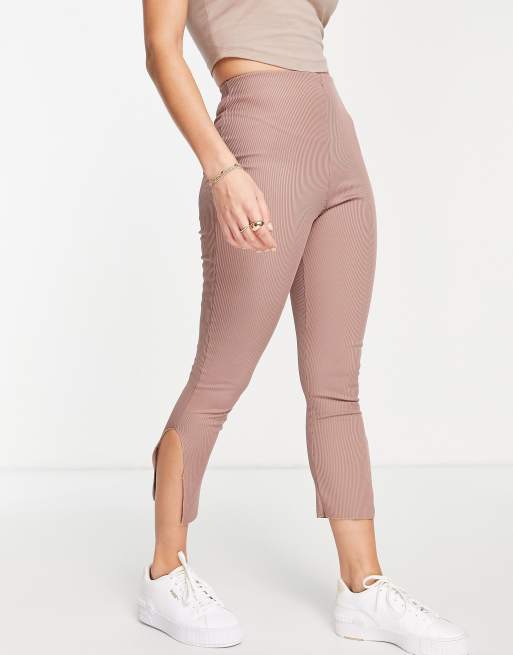 Missguided - Geribbelde legging met split in de zoom in bruin