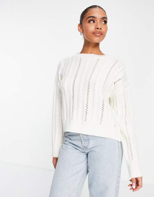 Missguided - Kabelgebreide trui met koorddetails in wit