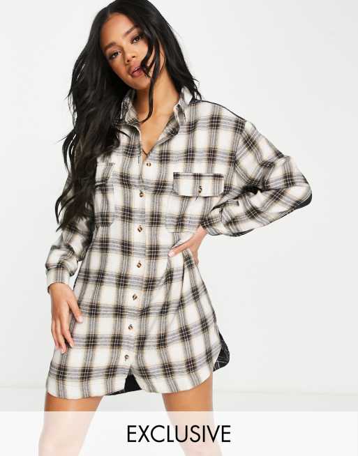 Missguided - Oversized overhemdjurk in marineblauw met contrasterende ruitprint