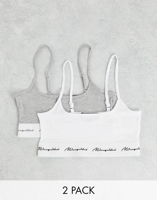 Missguided - Set van 2 jersey bralettes met logoband in grijs en wit