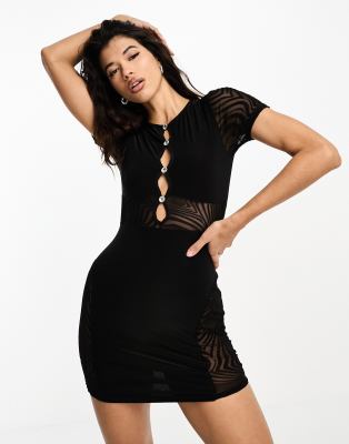 Missy Empire - Mini jurk met mesh inzetstukken en uitsnijdingen in zwart