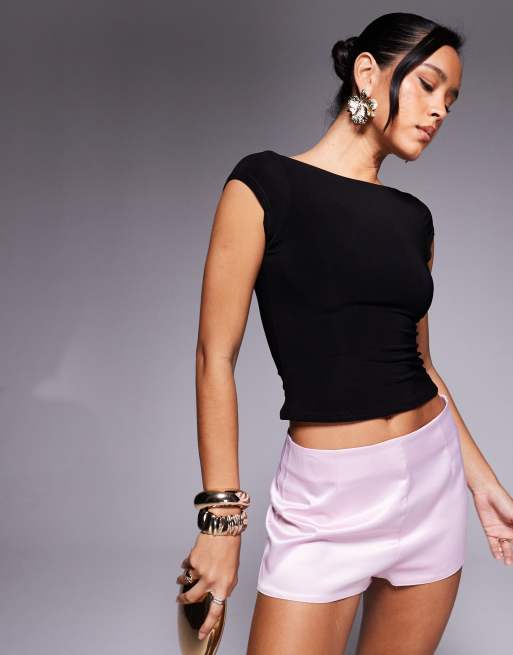 Missy Empire - Top van gelaagde gladde stof met kapmouwtjes in zwart