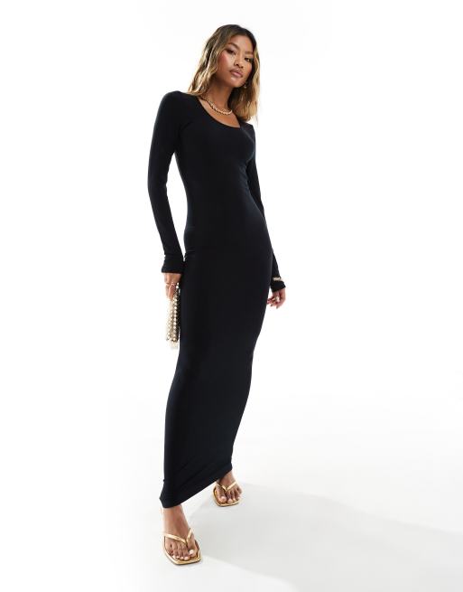 Missy Empire - Zachte geribbelde maxi jurk met lange mouwen in zwart