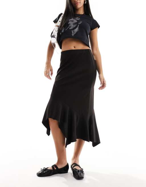 Monki - Asymmetrische gedrapeerde midi rok in zwart