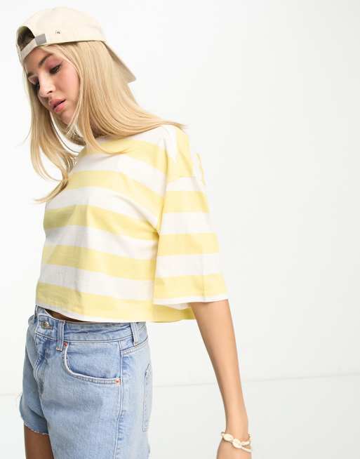 Monki - Cropped oversized T-shirt met witte en gele strepen