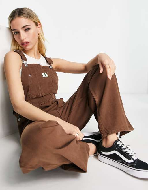 Monki - Denim tuinbroek met motief van kersjes in bruin
