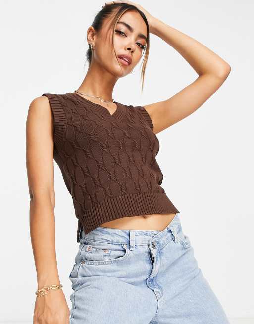 Monki - Gebreide spencer met kabels in bruin