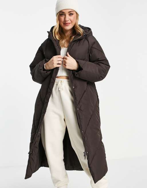 Monki - Gewatteerde jas met capuchon in bruin - BROWN