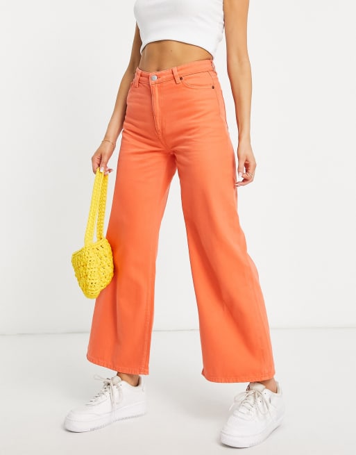 Monki - Jeans met wijde pijpen in oranje