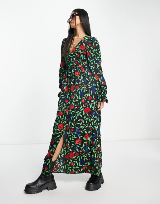 Monki - Jurk met knoopsluiting, V-hals en lange mouwen in multi