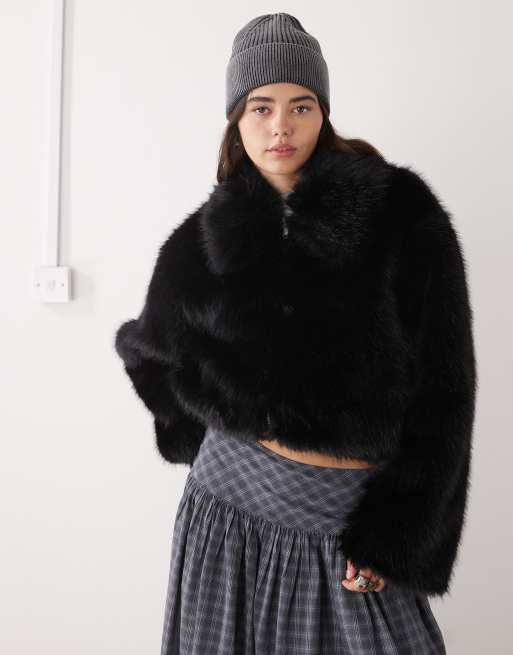 Monki - Kort jack van imitatiebont in zwart